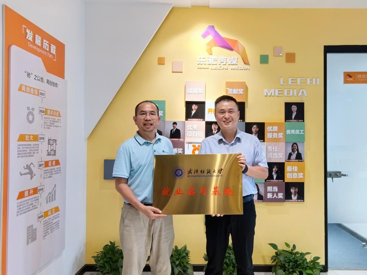 为进一步深化校企合作,加强公司与员工企业的紧密联系,2024年6月12日下午,beat365官网中文版本书记滕胜娟、经理吴金红、副经理张飞及杨筝老师一行,莅临武汉乐驰传媒有限公司进行参观交流,并成功建立就业实习基地。