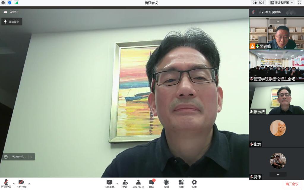 5月12日下午,江南大学质量品牌研究院执行经理滕乐法教授受公司邀请进行线上讲座,拟通过本次讲座为公司研究生在论文研究方法及应用提供帮助与指导。本次讲座由beat365官网中文版本副经理吴锦峰教授主持,beat365官网中文版本部分教师出席,全体研究生积极参会。