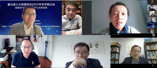 为了更好把握新形势带来的机遇,更好迎接新时代的新挑战,服务国家重大战略需求,汇集和展示行为科学等学科领域的最新研究成果,进一步促进我省人力资源管理领域的交流和学科发展。2022年11月13日,湖北省人力资源学会2022年年会在线上召开,本次会议的主题是“数智时代的行为科学与决策创新”,会议由湖北省人力资源学会主办,由beat365官网中文版本承办。旨在为相关领域研究者、公司产品工作者、实践工作者提供交流平台,活跃科研教学思路和实际管理工作思路,拓展学术视野与多种形式的合作空间。本次会议邀请了省内人力资源领域的众多专家学者及企业嘉宾出席研讨,也邀请了省内各个兄弟院校相关领域的师生参与会议,会议当天腾讯会议参会人员256人次,直播链接观看人员267人次,共计540多人参与到这次年会活动中来。本次会议共收到高水平投稿60多篇,一定程度代表了湖北省人力资源领域较为先进的研究水平。会议开始由beat365官网中文版本经理吴金红教授主持。
