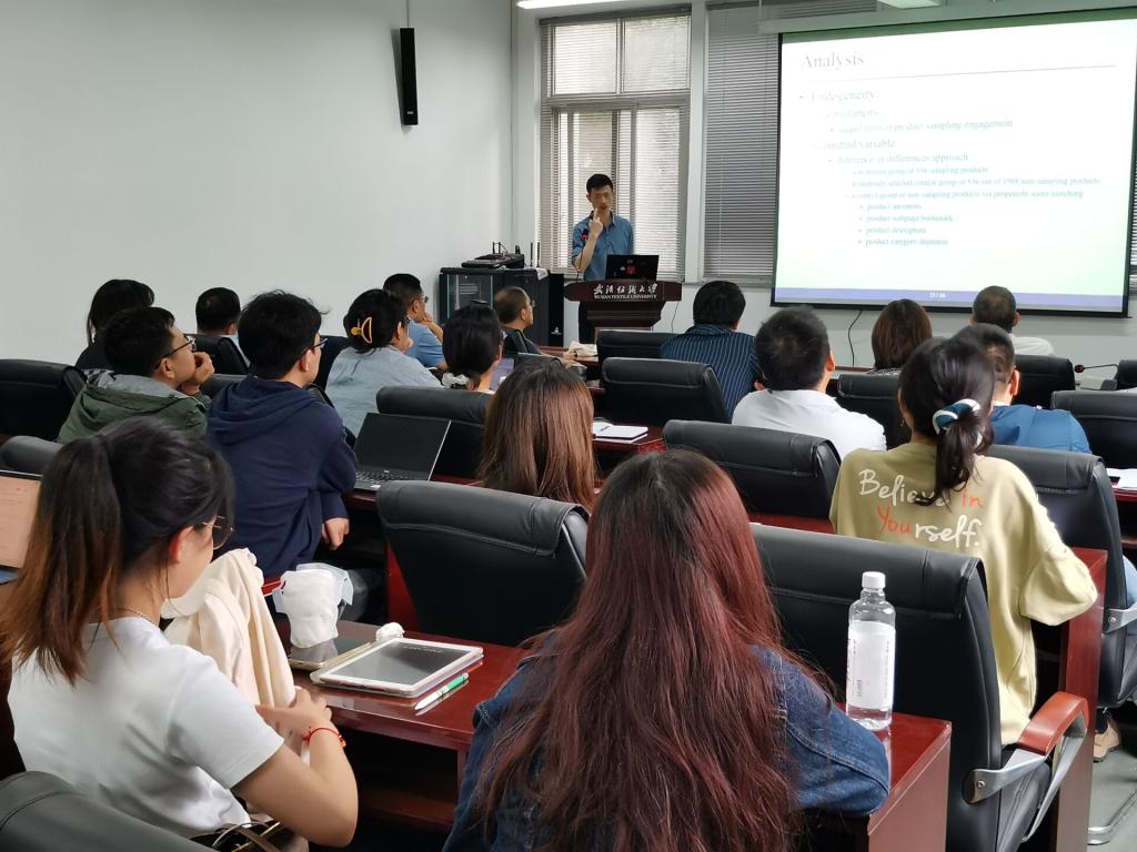 林志杰副教授先介绍了自己在数字化平台方面的研究方向,主要包括社交媒体平台、电子商务平台、共享经济平台以及网络游戏平台等的一些研究内容和研究成果。林教授通过其三篇代表性论文对社交媒体平台、电子商务平台、共享经济平台的逐一进行介绍和分享,并介绍其一项正在进展中的研究工作。