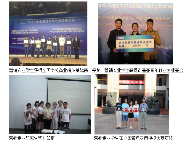 主要课程:市场营销、市场调研、国际市场营销学、国际商务管理、商务谈判、商务英语、战略管理、广告学、渠道管理、销售管理、零售管理、服务营销学、人力资源管理、生产与运作管理、管理信息系统、电子商务概论、财务管理等。