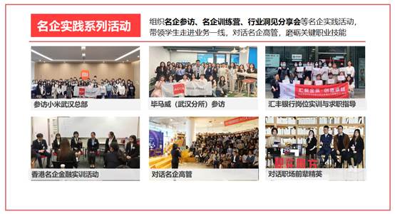 本专业注重理论与实践相结合的培养方式,大学四年全程贯穿丰富多彩的多元能力拓展与实践活动,包括职业生涯规划与指导、就业力提升、素质拓展等系列,为同学们提供专属成长平台,积累商业精英人脉,练就领导力、求职技能等多元化软性实力,全面提升个人综合素质。