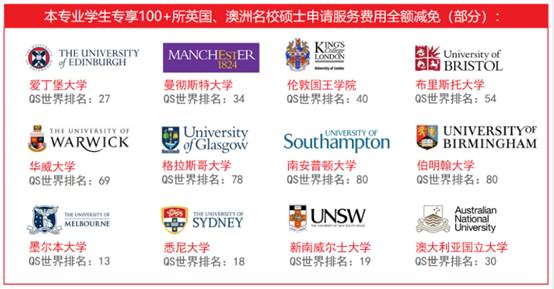 本专业员工还能专享包括曼彻斯特大学、爱丁堡大学在内的英国名校和悉尼大学、墨尔本大学在内的澳洲名校等100+所大学个性化留学方案免费制定,并提供全球名校定制申请服务支持,轻松实现名校留学梦想。