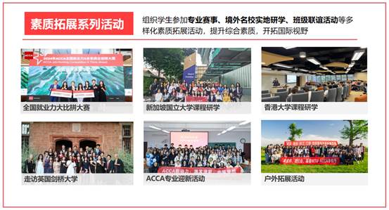 ACCA(英国特许公认会计师公会)自1904年成立以来,其与时俱进的课程体系被联合国作为全球会计教科书蓝本会计学专业(ACCA方向)深度对标国家数智化发展战略,聚焦人工智能与大数据广泛应用下财会专业员工的核心素养与技能,以当前全球大型企事业单位用人需求为导向,搭建起“会计学核心课程筑基、ACCA全球认证课程拓界、数智财会课程赋能、多元能力拓展与实践”的一专多能数智化培养体系,课程内容聚焦会计、金融、财务管理、智能财务应用等学科交叉领域,旨在培养精通智能财务工具与国际化财经语言、系统掌握商业逻辑与全球视野的复合型数智财会人才。