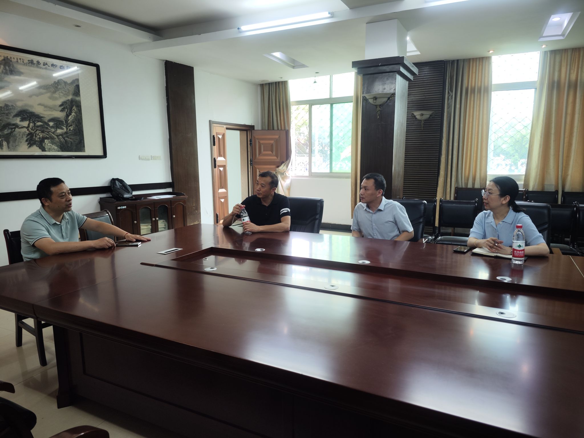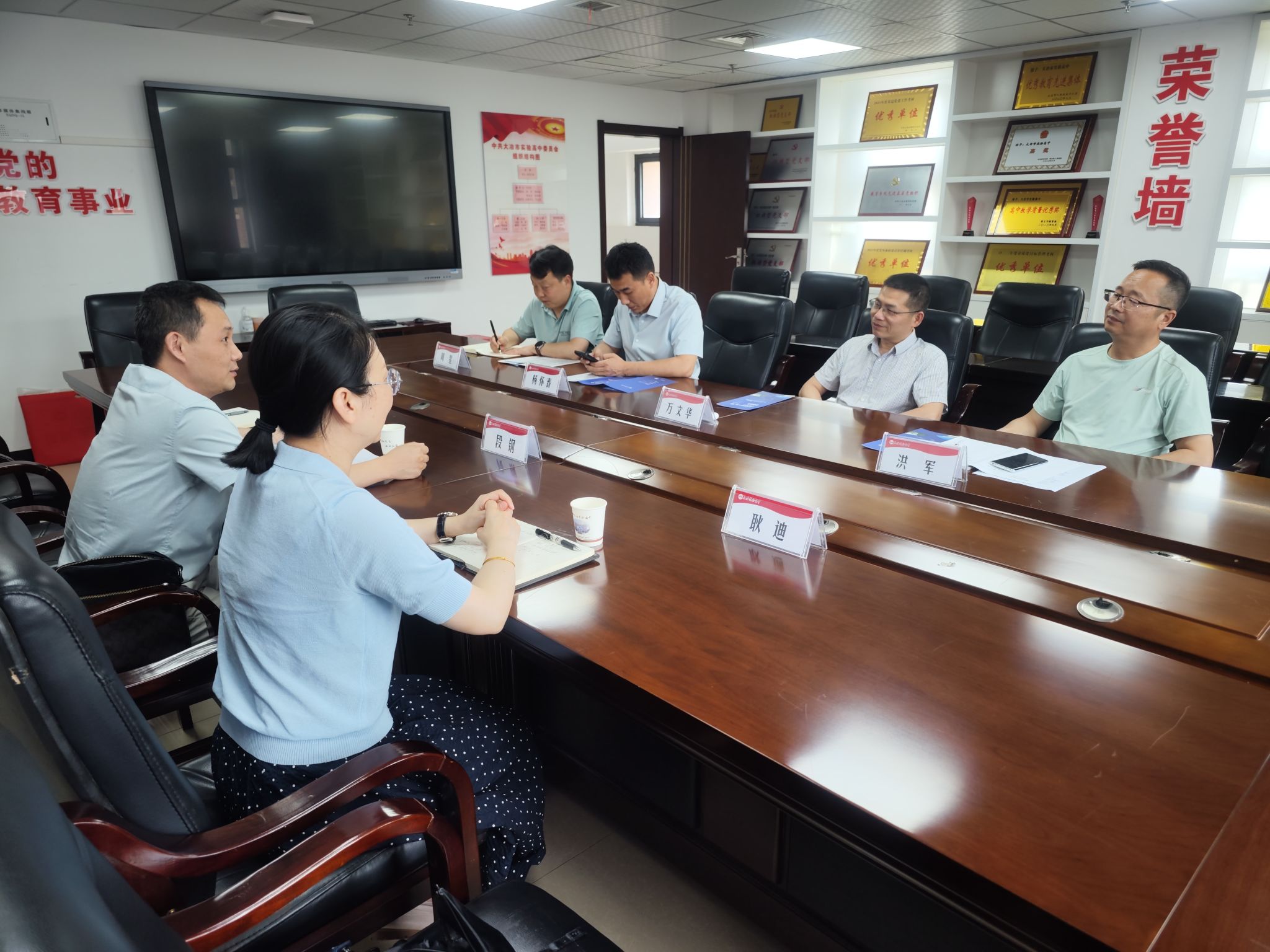 在大冶实验高中,万文华董事长、洪军副董事长等领导出席,万董事长对公司的到来表示热烈欢迎,介绍了公司历史、高考情况、团队力量,希望两校多开展交流活动,形成稳定的合作。