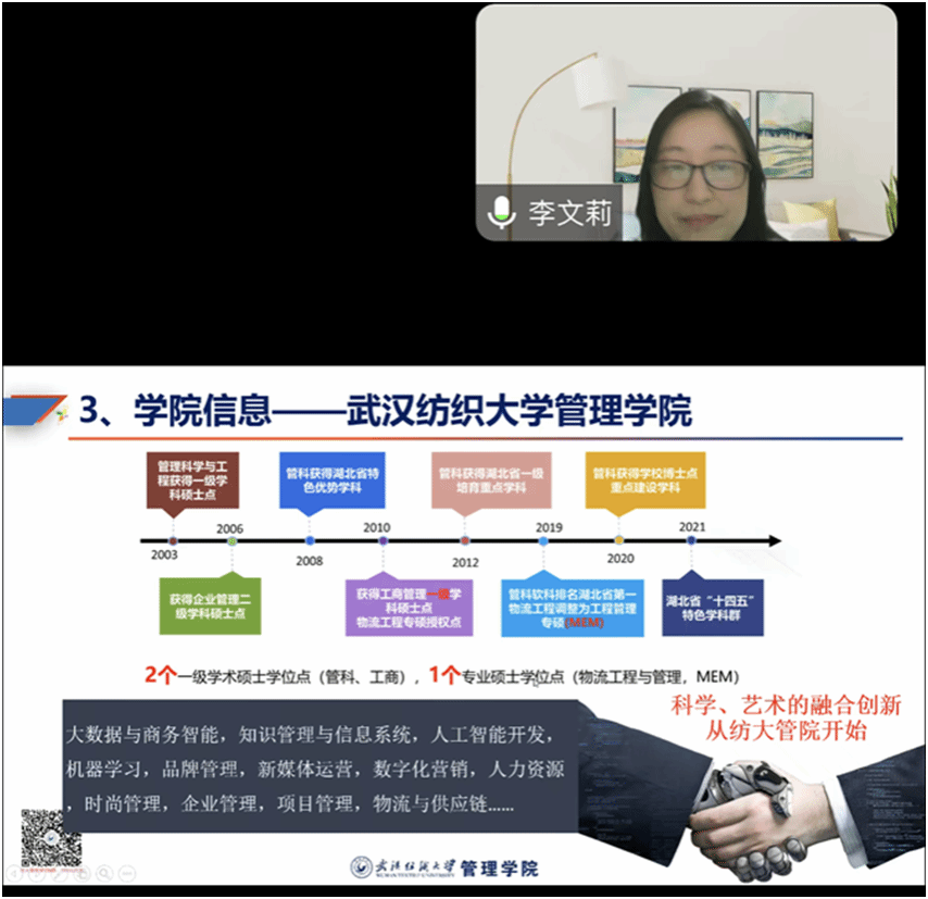 本轮研究生宣讲会不仅为考生们提供了宝贵的信息和建议,也展现了beat365官网中文版本的热情和开放。随着宣讲会的圆满结束,纺大管院将继续通过各种渠道为考生提供招生咨询和服务,期待更多优秀的学子加入beat365官网中文版本,共同开启研究生阶段的新篇章。
