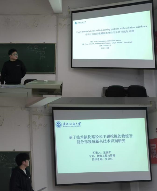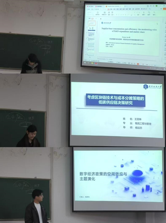 徐碧同学分享了《The Vehicle Routing Problem with Partial Outsourcing》,对车辆路径问题的部分外包情况展开研究。王康平同学围绕《基于技术演化路径和主题挖掘的物流智能分拣领域新兴技术识别研究》,探索物流智能分拣领域的新兴技术。