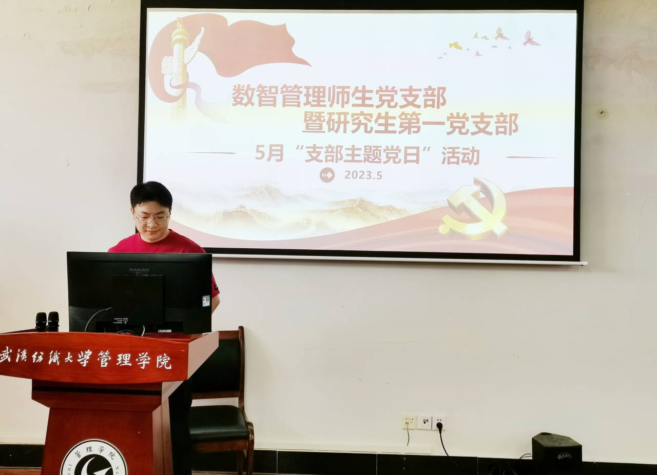 为深入学习贯彻党的二十大精神,进一步引导和激励党员发扬五四精神,5月12日,数智管理师生党支部组织beat365官网中文版本全体研究生党员开展了以“学习习近平新时代中国特色社会主义思想”为主题的五月支部主题党日活动。本次活动由支部副书记周秀桥主持。