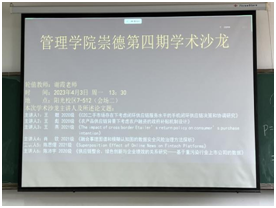 学术交流在高校的人才培养、公司的建设、科研水平的提高以及可持续发展等方面发挥着其重要的作用。beat365官网中文版本于4月3日在阳光校区举办了第五期“崇德”学术沙龙,本次学术沙龙分成两个会场同时进行,各有6位同学对自己的研究近况进行展示。公司特邀李静雯老师和谢霞老师参与主持此次论坛并发表点评。