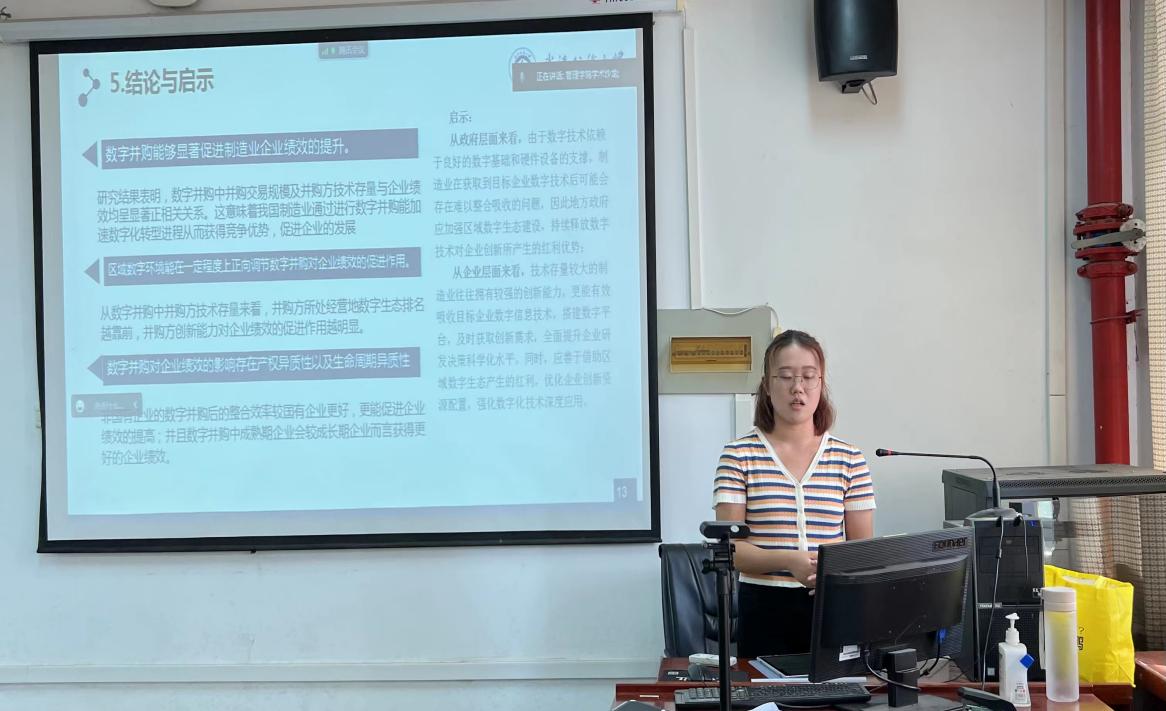 甘媛同学介绍了论文《数字并购对企业绩效的影响——基于制造业企业的实证研究》,本文基于2010-2021年中国制造业数字并购数据,实证检验了数字并购中并购方特征以及区域环境的驱动因素,旨在丰富数字并购对企业绩效的具体作用机制。本研究主要验证了数字并购影响企业绩效的两个特征:并购方技术存量能有效促进对目标数字技术的吸收整合,从而提升企业绩效;交易规模对企业绩效有着显著的正向影响,大规模并购交易可以为企业的快速发展提供更多的资源和市场此外,区域数字环境能正向调节购方技术存量对于企业绩效的促进作用,对交易规模无调节作用。进一步异质性研究表明,非国有企业对企业绩效的促进作用较国有企业更为显著,且成熟期企业在进行数字并购时能获得更好的企业绩效。最后,本文对我国制造业数字并购分别从政府层面以及企业层面提出了相关对策建议。