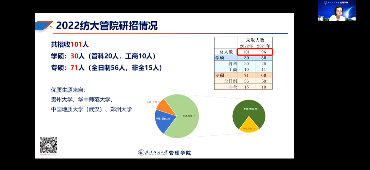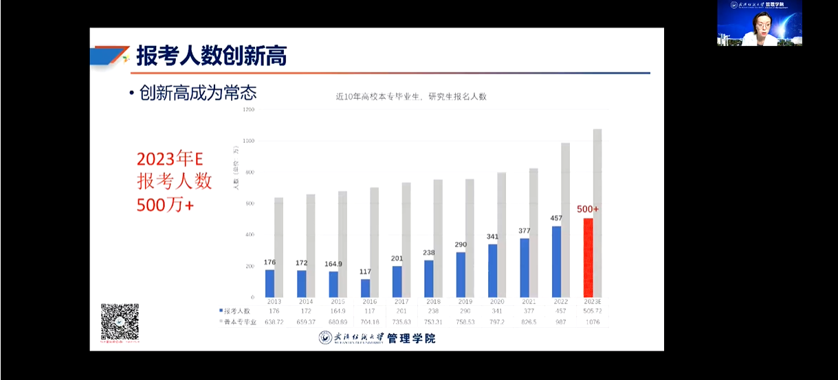 7月26日晚8点,beat365官网中文版本杨筝博士利用线上会议为安阳师范公司的同学进行了考研报考动员会与考研宣讲会。杨筝博士针对性的讲解了最近几年的考研情况,为同学们分析了报考以及录取人数情况,针对安阳师范公司的员工们强调需要平稳心态,在报考专业冷热不均的前提下,科学进行院校专业选择,把握好自身优势。最后将大家提出的问题进行系统性的解答,并针对一些备考误区给出意见。